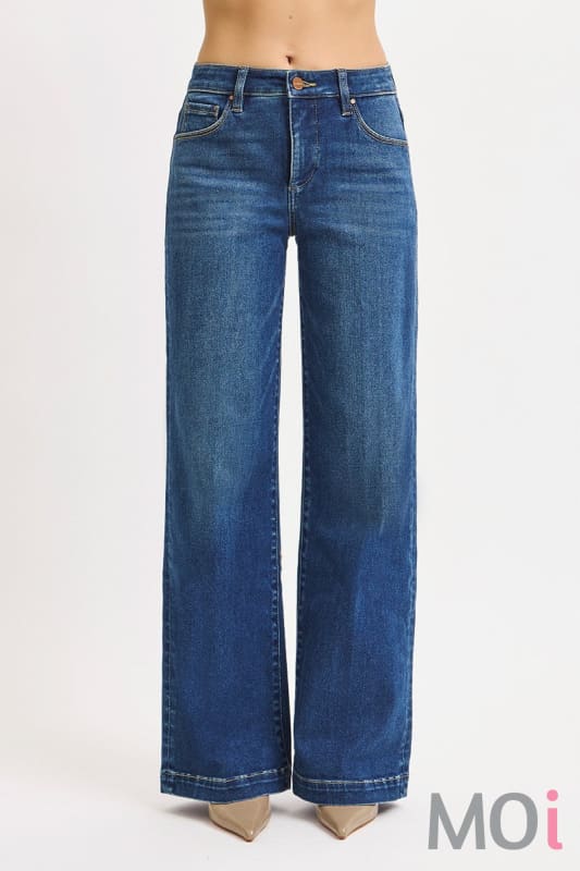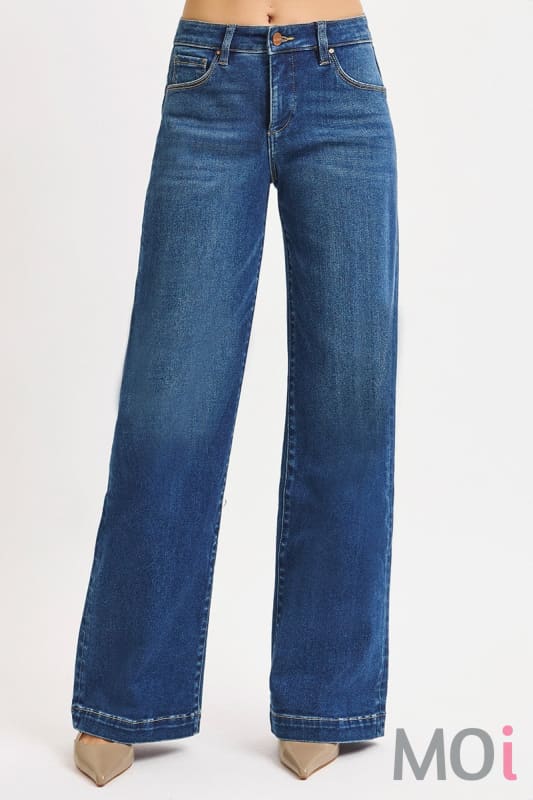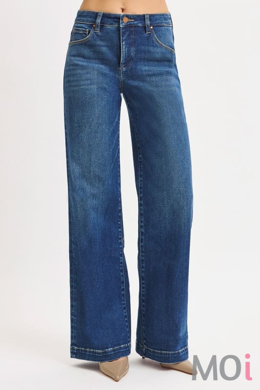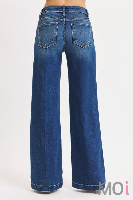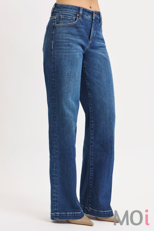TUMMY CONTROL MID RISE WIDE LEG FRONT & BACK IRON PRESS LINE DETAILED JEANS